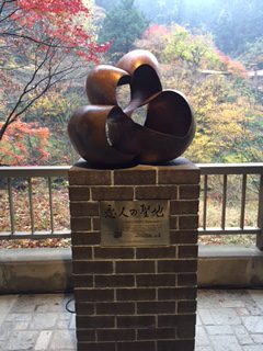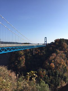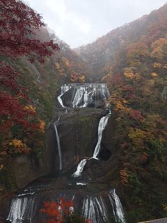 ホテルを少し早めの9時に出発!最初の目的地は袋田の滝。名前は聞いたことのある方も多いのではないでしょうか?袋田の滝は【日本三名瀑】のひとつに数えられる立派な滝なんです。天気は残念ながら雨でしたがここも紅葉が綺麗に写っていますね♪ちなみに呼び名がもう一つあって『四度の滝』と呼ばれています。これは西行法師が『この滝は四季それぞれ1度ずつ訪れないと真の風趣は滝の味わえない』と絶賛したことからよばれているとのこと。もうじき秋の滝は終わってしまいます・・・。ですが、これからの季節は『氷瀑』をご覧頂けます。滝がぜーんぶ凍っていてアイスクライマーも出来るとか!?入場料は大人300円とリーズナブルですので四度お楽しみいただくのも良いかもしれません。
