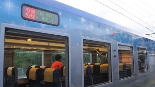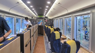 満席の日が多いHIGHRAILですがぜひ皆様もお楽しみください。昼間も1往復していますが昼間の方が混雑しているようです。下り1号は軽食・上り2号はスイーツセットがびゅうで注文できます。