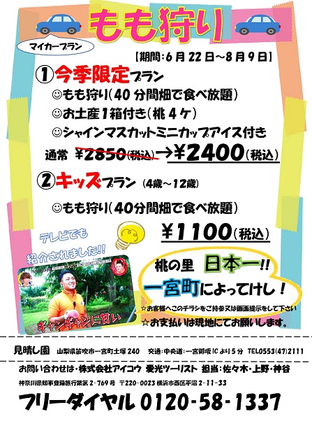 山梨県一宮フルーツ里 『 見晴し園 』の限定お得プランです!