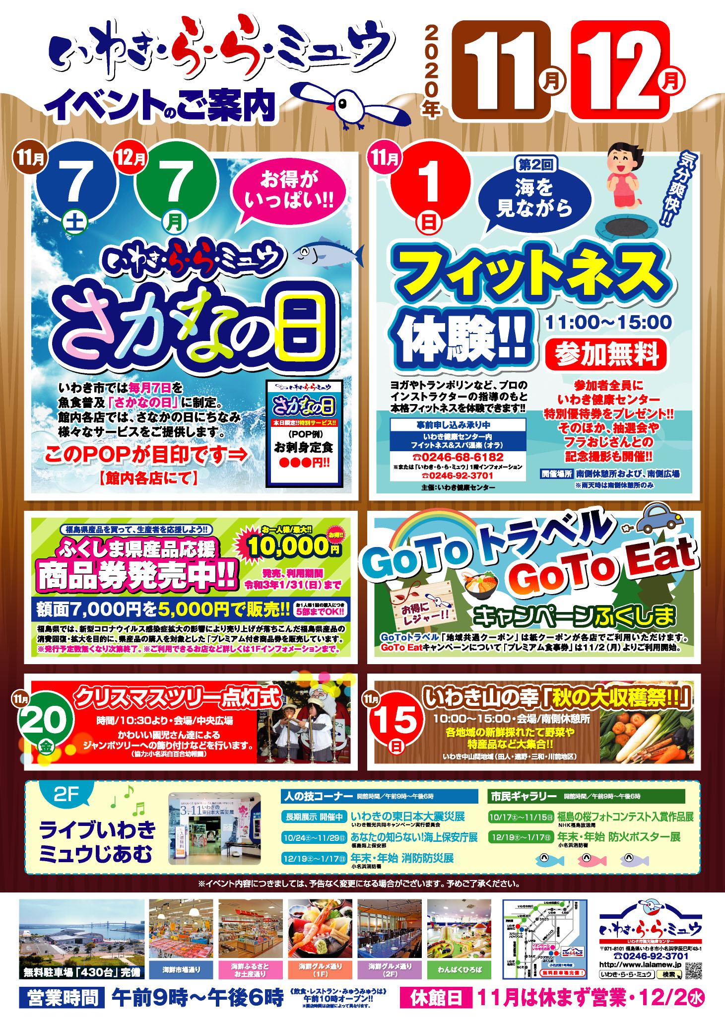 本日も、先月に引き続き、いわき・ら・ら・ミュウのイベント情報のご紹介です♪