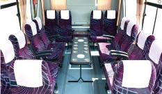 中型バスは設備やシートの広さなどが大型バスと大差がないため、少人数~中人数の団体様のご利用に適しています。大型バスと同様に後部をサロンタイプにし、宴会など楽しい時間を過ごすことができます。